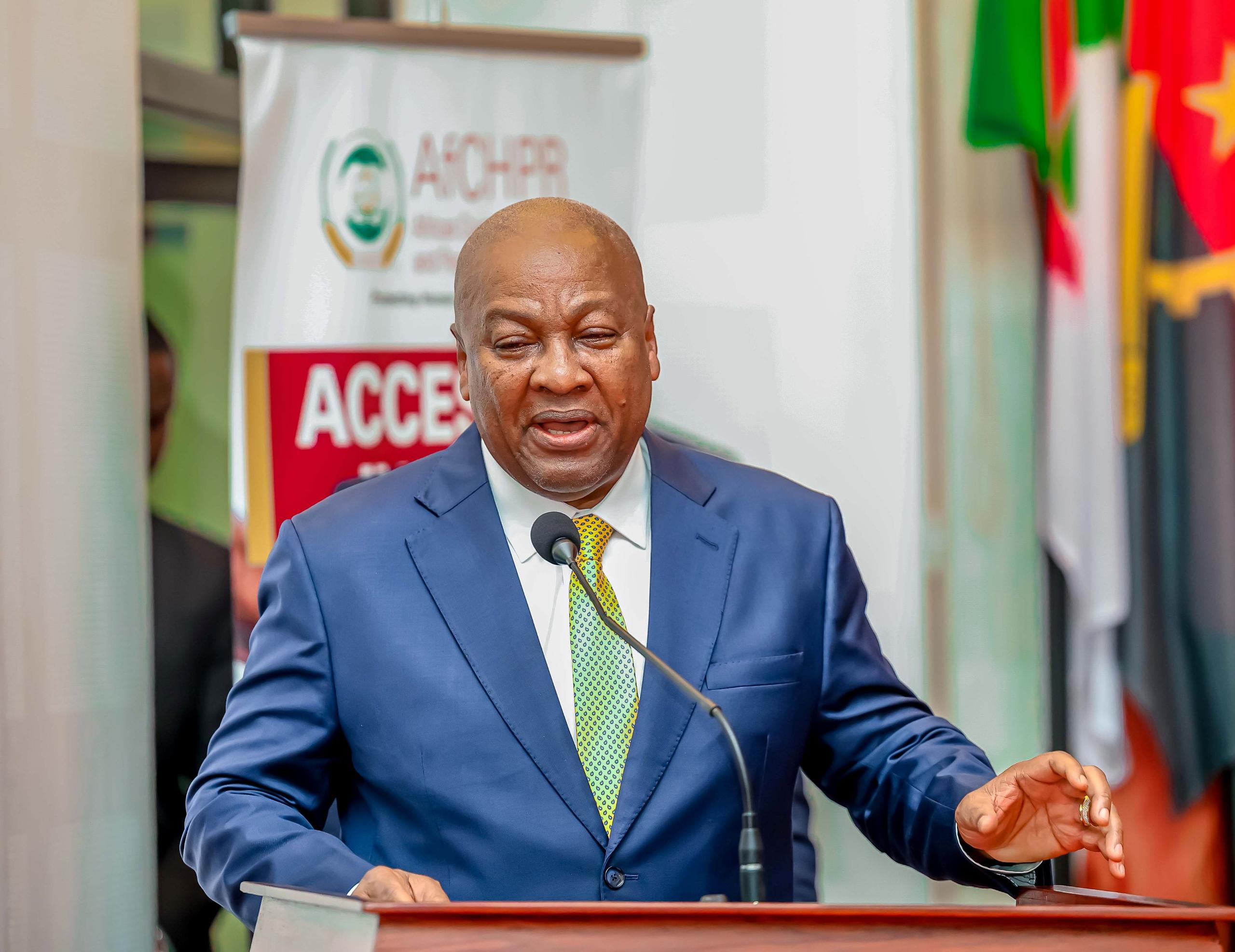 MHE. JOHN DRAMANI MAHAMA, RAISI WA JAMHURI YA GHANA AKIZUNGUMZA NA VIONGOZI NA WADAU WA MAHAKAMA YA AFRIKA.