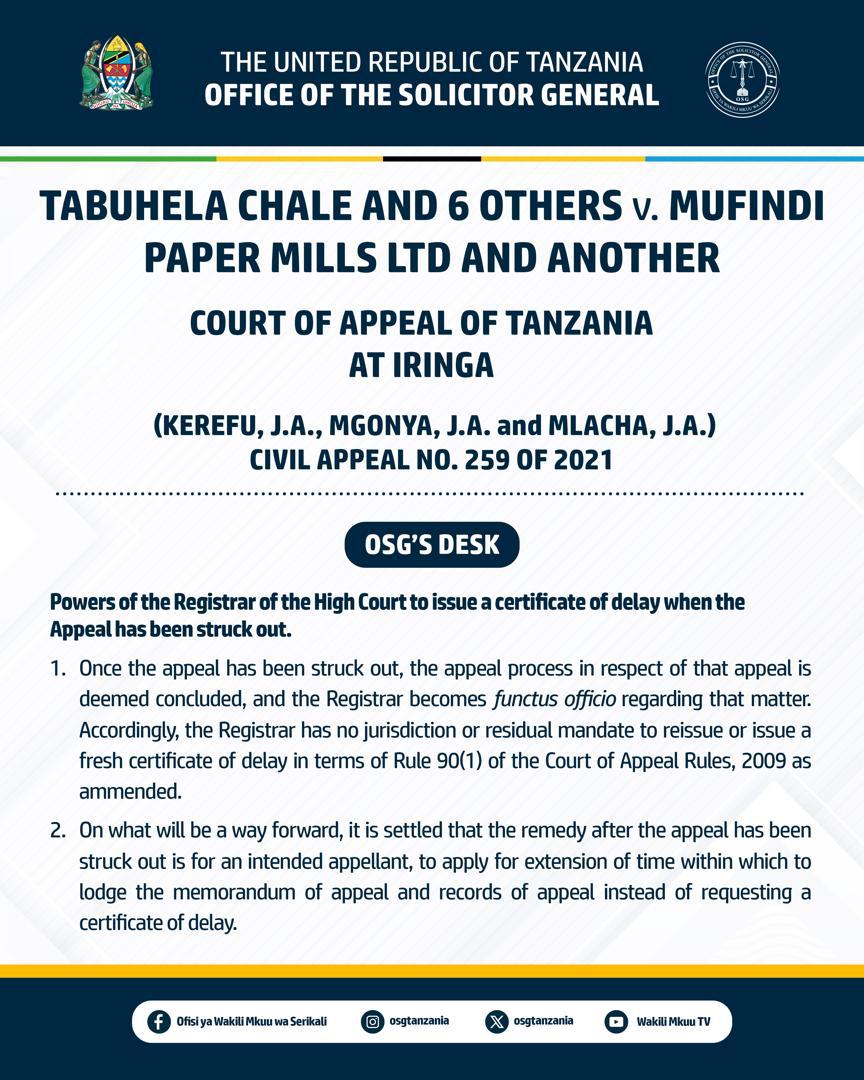 TABUHELA CHALE AND 6 OTHERS V. MUFINDI PAPER MILLS LTD AND ANOTHER CIVIL APPEAL NO. 259 OF 2021