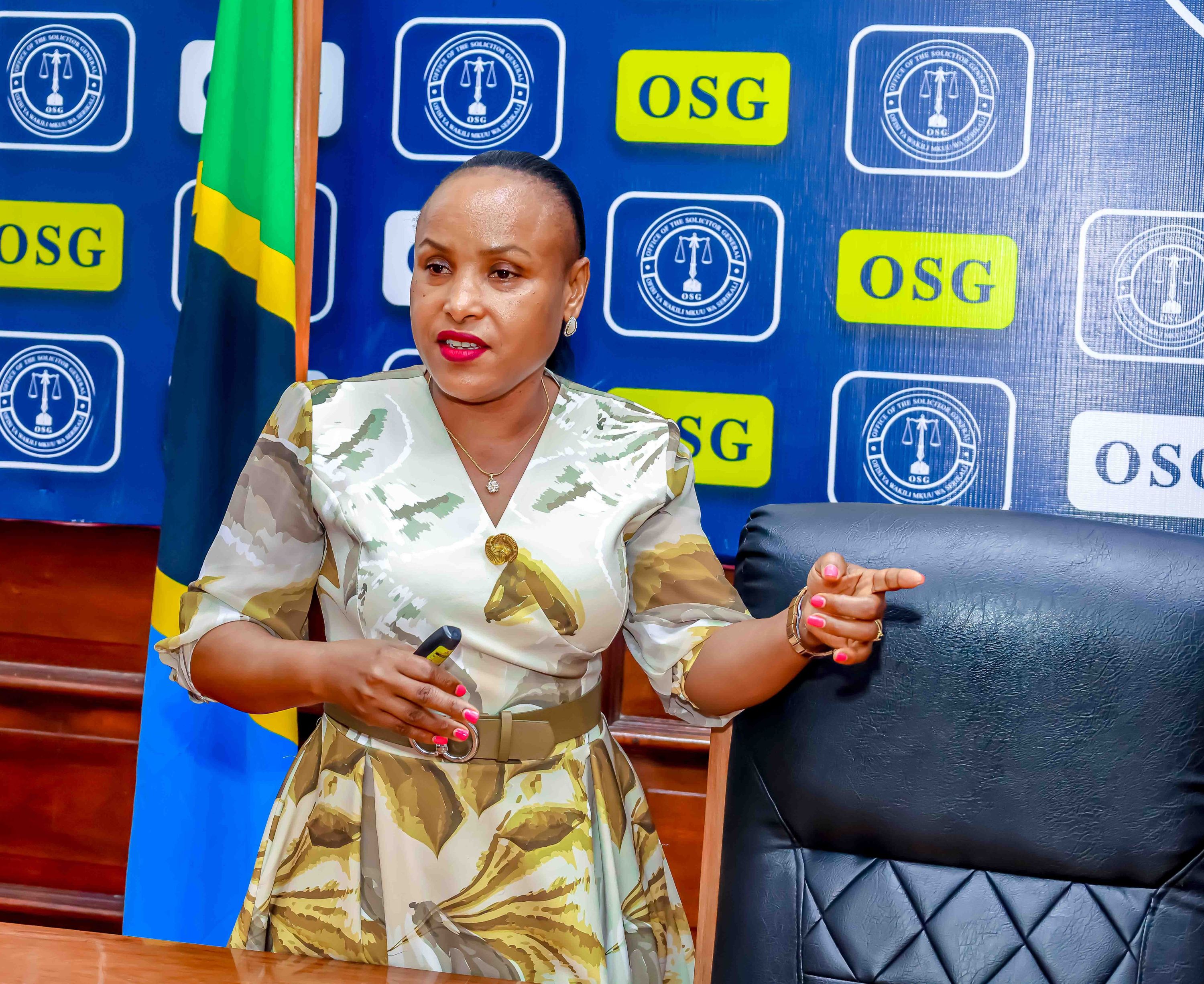 Bi. Vaileth Ndosi Mkurugenzi Mtendaji Conscious Mind Corporation akitoa mada kuhusu Afya ya Akili kwa Wanawake wa Ofisi ya Wakili Mkuu wa Serikali