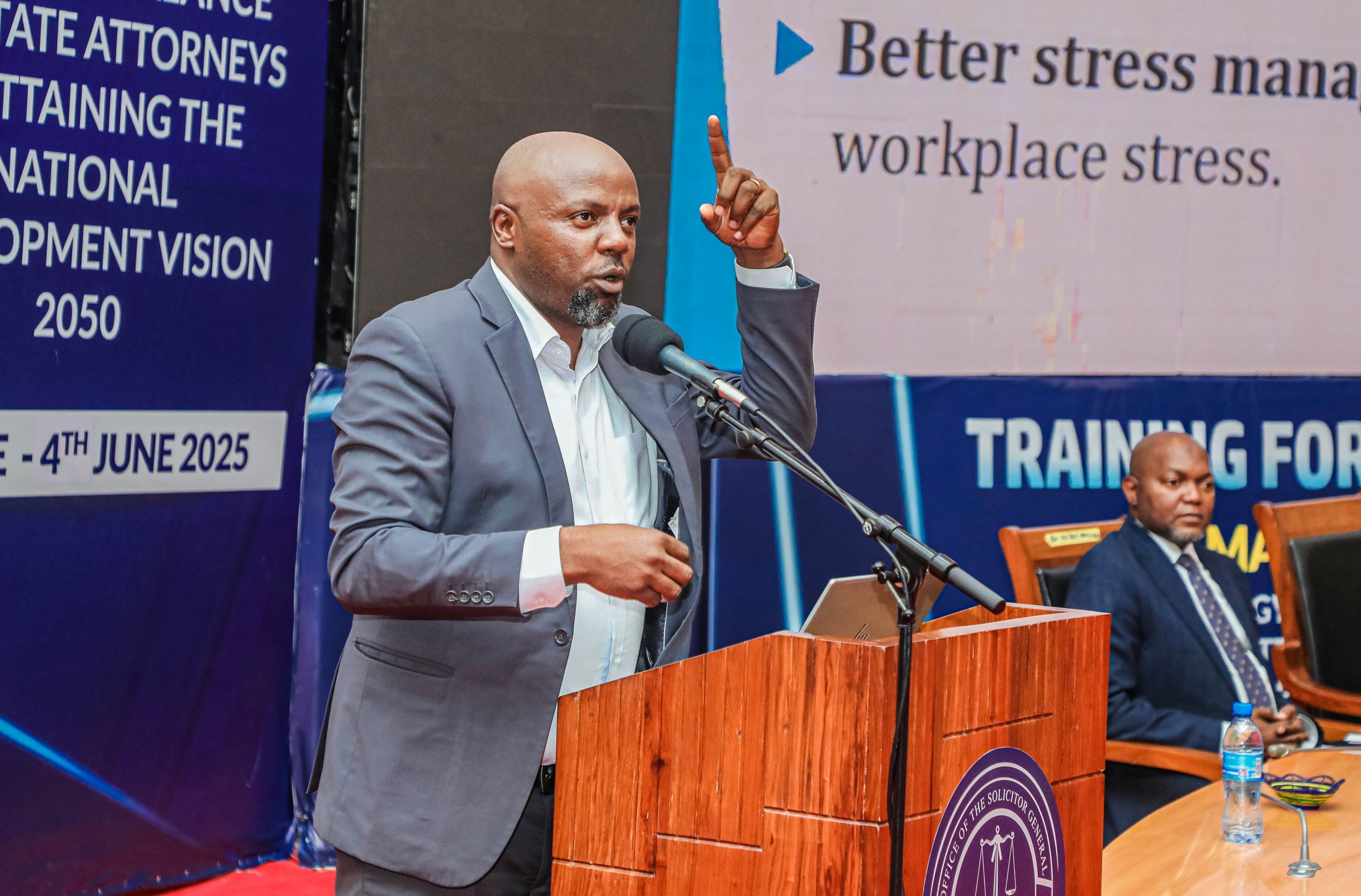 Ndugu Mosses Raymond akitoa mada kuhusu matumizi ya Akili hisia wakati wa Mafunzo kwa Mawakili wa Serikali kutoka Wizara,