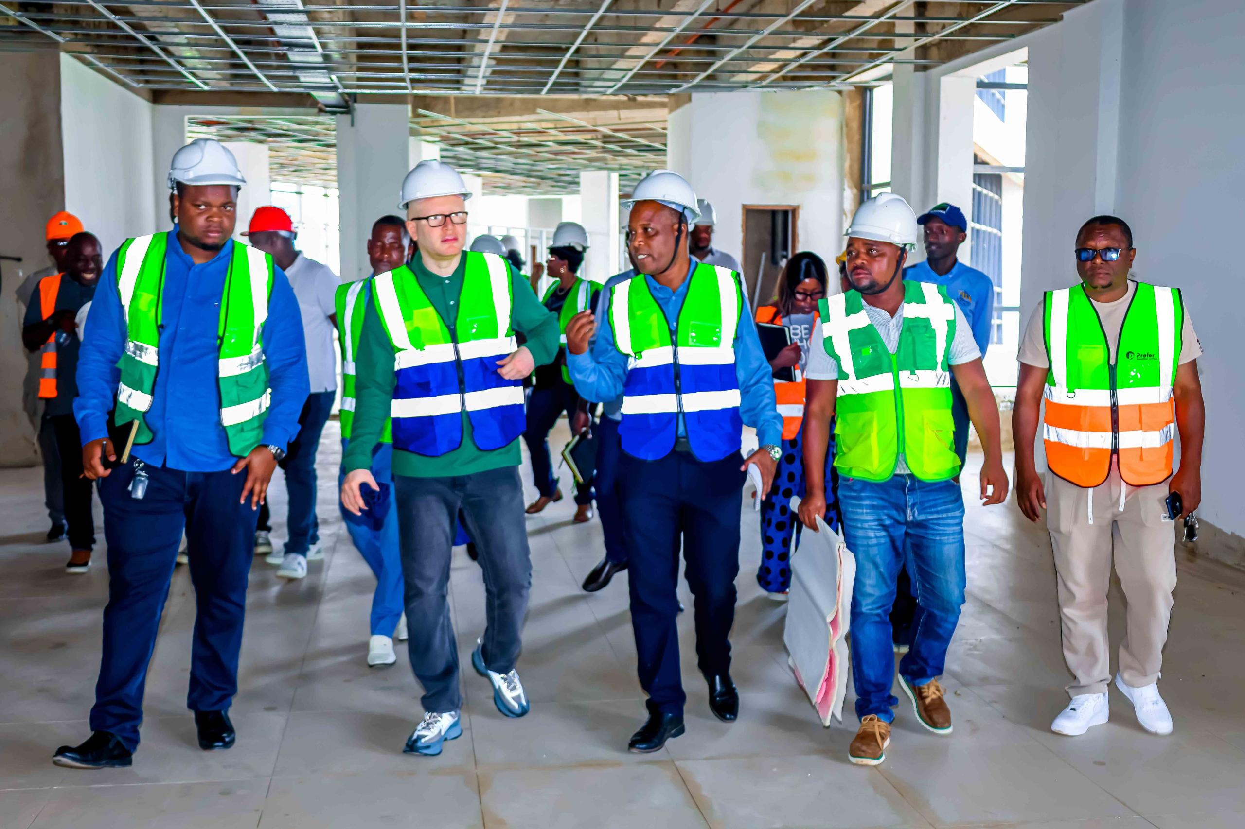 Wakili Mkuu wa Serikali, Dkt. Ally Possi (wa pili kushoto) akipatiwa maelezo na mkandarasi, Meneja Ujenzi Kanda ya Mashariki wa SUMA JKT