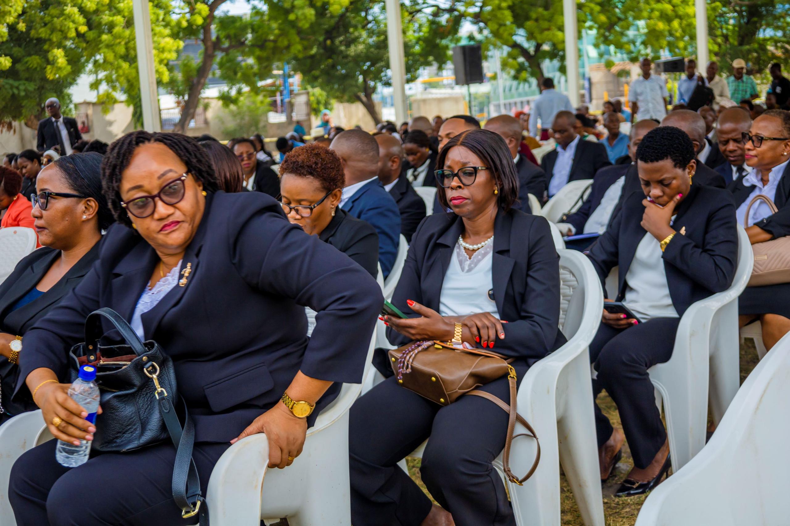 Wananchi wa Mkoa wa Dar es Salaam wakimsikiliza Mkuu wa Mkoa wa Dar es Salaam, Mhe. Albert Chalamila (hayupo pichani) wakati akizindua Kamati za Ushauri wa Kisheria Ngazi ya Mkoa na Wilaya na Kliniki ya Sheria Bila Malipo Mkoa wa Dar es Salaam kwenye viwanja vya Mnazi Mmoja jijini Dar es Salaam.