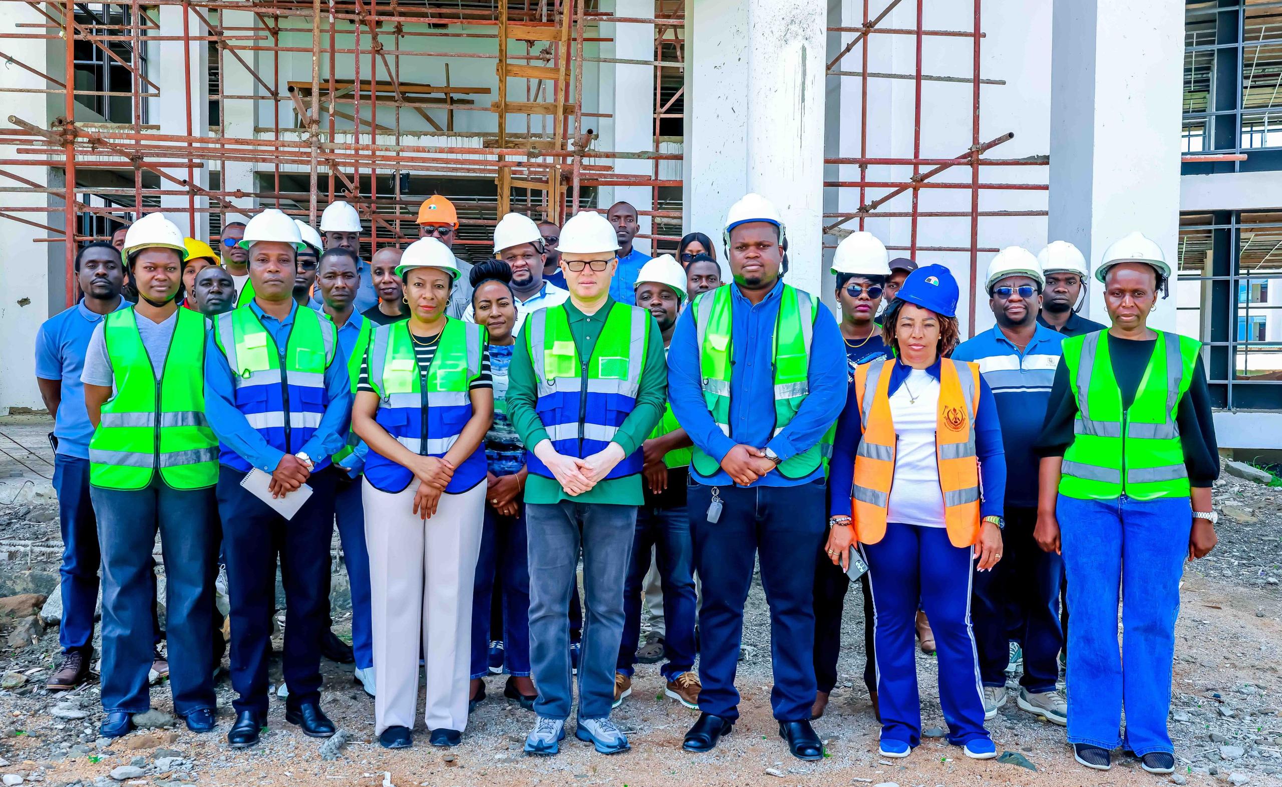 Wakili Mkuu wa Serikali, Dkt. Ally Possi akiwa kwenye picha ya pamoja na wajumbe wa Menejimenti ya Ofisi ya Wakili Mkuu wa Serikali, Mkandarasi - Suma JKT na mshauri elekezi, TBA baada ya ziara yake ya kukagua maendeleo ya ujenzi wa jengo la Ofisi hiyo unaoendelea katika Mji wa Serikali, Mtumba, Dodoma.